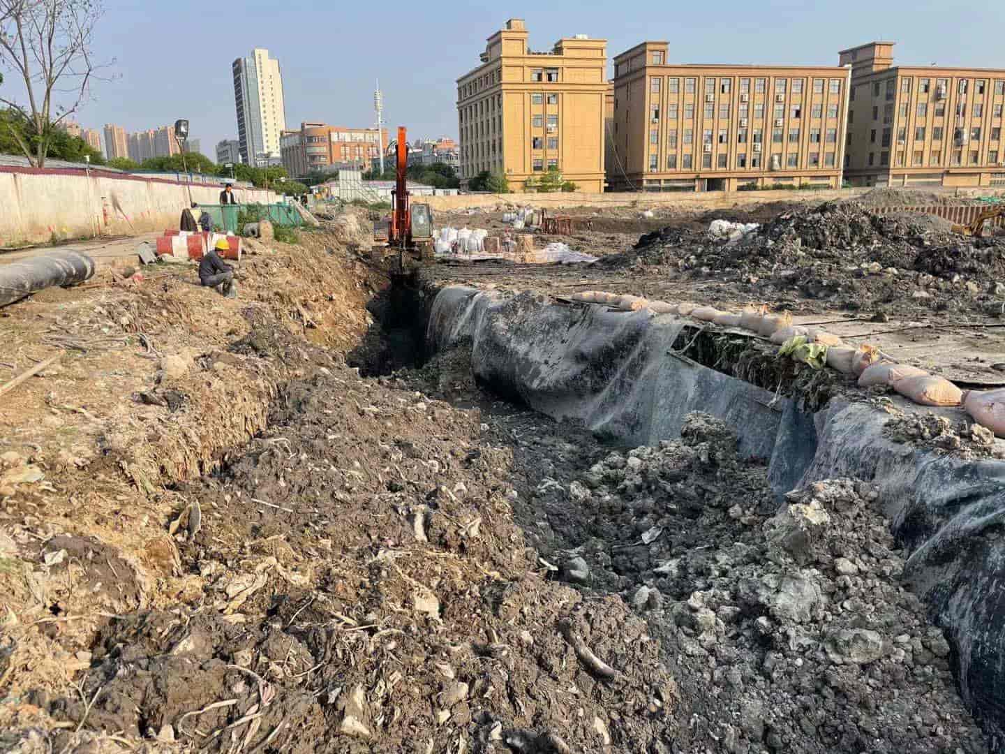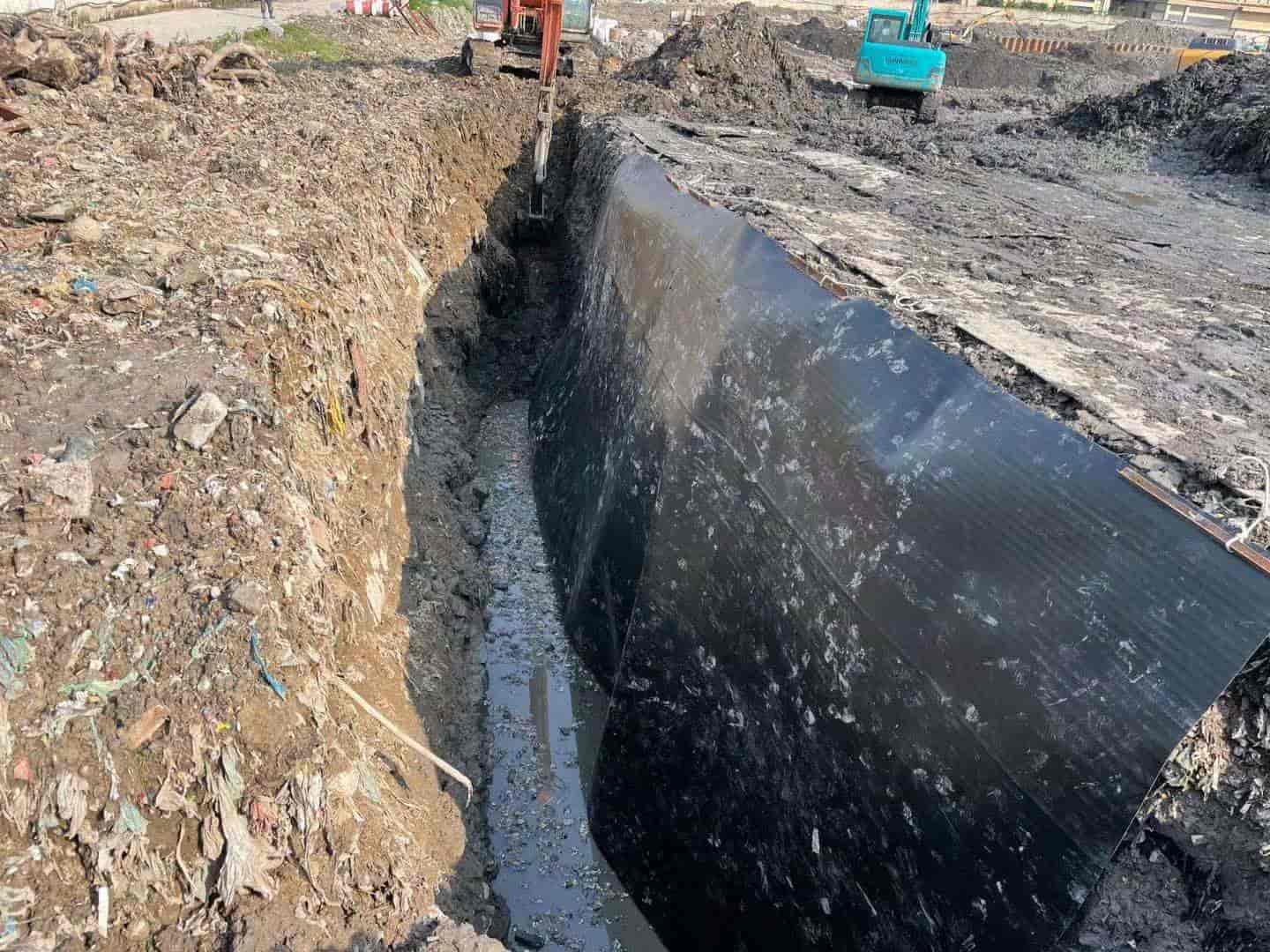 (3)土-膨润土-HDPE膜复合阻隔墙建设;
