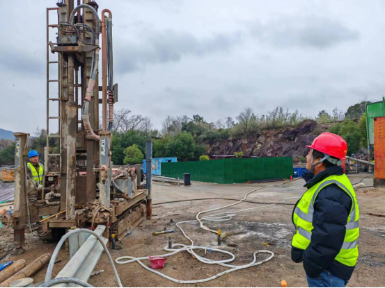 正月16上午,以公司技术副总成俊先生为首的一行人,在浙江海宁黄湾卫生填埋场施工现场,正在指导工人们抓紧施工。