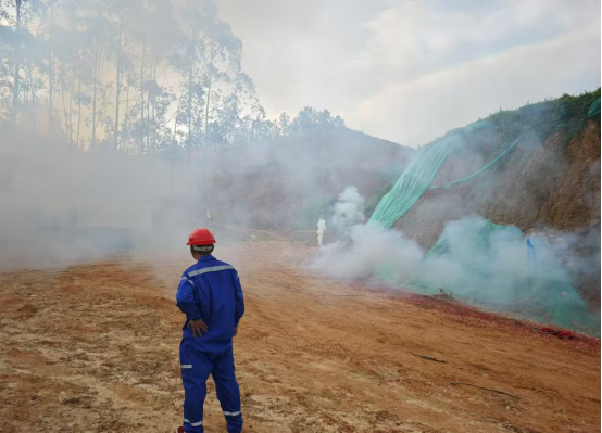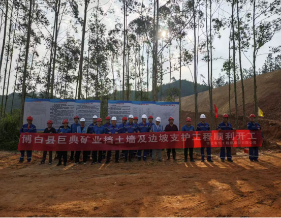 在鞭炮声中,由华北有色工程勘察院有限公司总承包、江苏森之蓝环保工程有限公司承建的博白县巨典矿业挡土墙及边坡支护工程正式开工。
