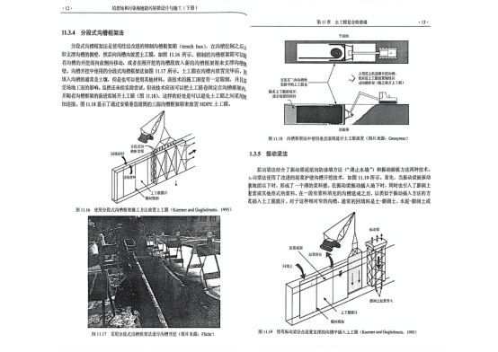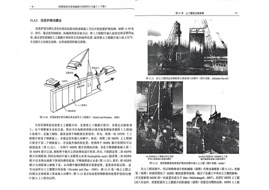 上图是钢框架泥浆护壁插入土工膜